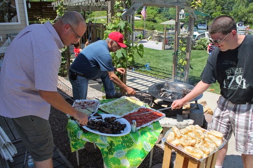 | The fry has always been a communal affair, but when I was growing up cooking was strictly the domain of grey-haired men. Grill-master Craig Bocskor (left) has relaxed the standards. |